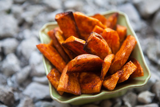 Skillet Sweet Potatoes: In large deep skillet, heat 1 1/2 inch deep vegetable oil to 365 degrees F. Add sweet potato strips to cover bottom of skillet; fry 5 minutes or until brown and tender. Remove from hot oil and drain on paper towels. Sprinkle with salt or powdered sugar.